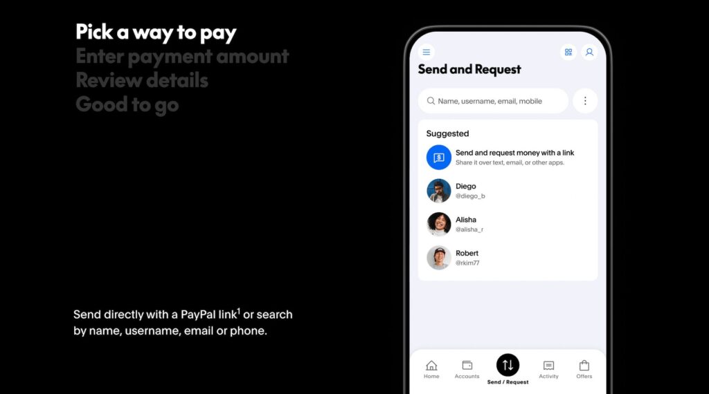 Simply pay with your PayPal balance, a linked bank account or an Amex Send account if you’re sending a domestic transfer.